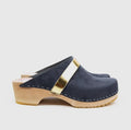 Skoene er laget av semsket skinn eller skinn, og har en tresåle som gir en autentisk og naturlig følelse. Med en høyde på 4,5 cm gir hælen en elegant løft og bidrar til å gi deg en flatterende silhuett.